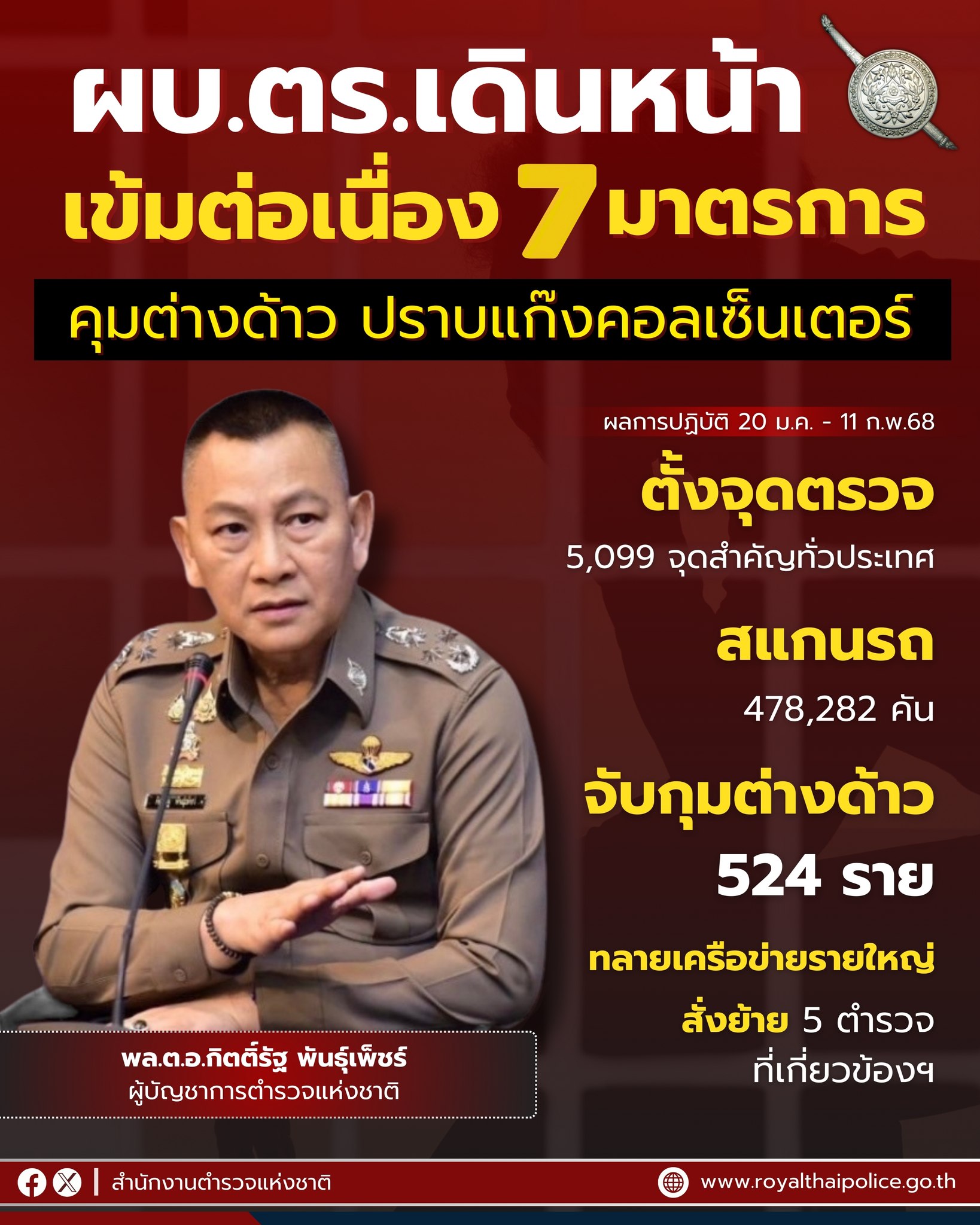 วันที่ 23 พฤศจิกายน 2568 เวลา 13:30 – 14:30 น. ภายใต้การอำนวยการของ• พล.ต.ท.กิติศักดิ์ ดุรงควิบูลย์