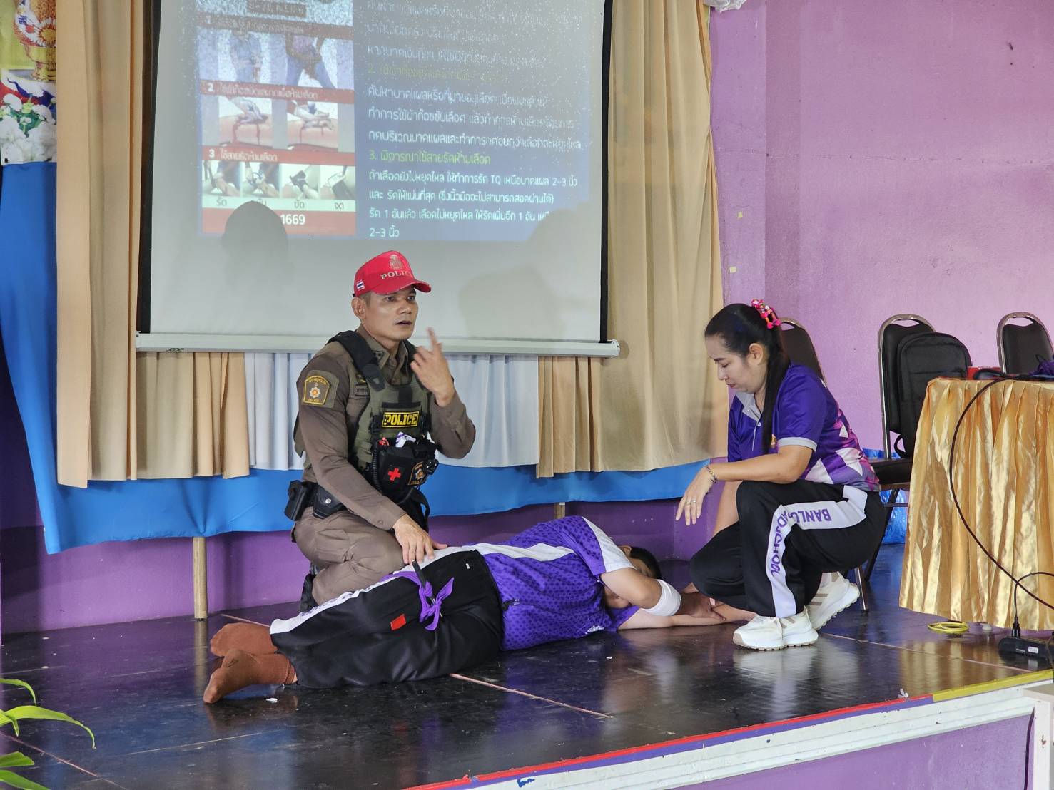 ผู้อำนวยการโรงเรียนบ้านลำพาด คณะครู นักเรียน ร่วมอบรมโดยมีการจัดอบรมให้ความรู้ในการใช้รถใช้ถนน และให้ความรู้เกี่ยวกับเหตุกราดยิง active shooter (หนี ซ่อน สู้) ณ โรงเรียนบ้านลำพาด อ.หนองไผ่ จว.เพชรบูรณ์