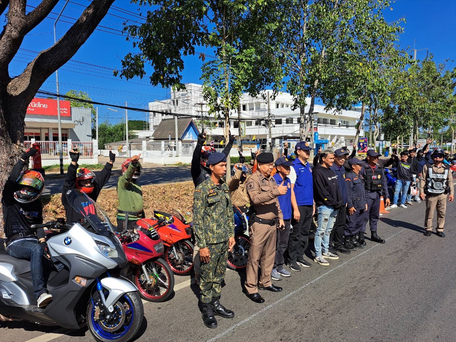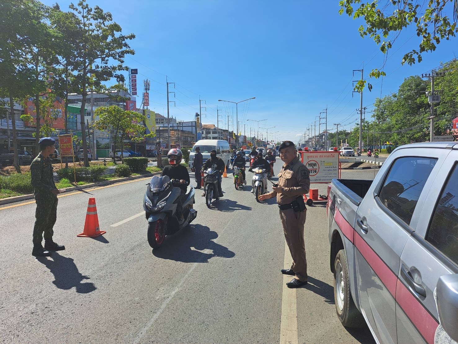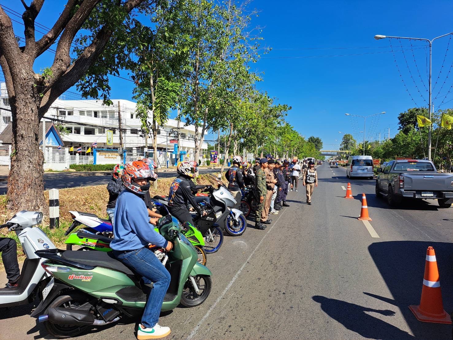 ตั้งจุดตรวจ ว.43 ประชาสัมพันธ์กลุ่มผู้ขับขี่รถจักรยานยนต์กรณี “ทริปน้ำไม่อาบ”