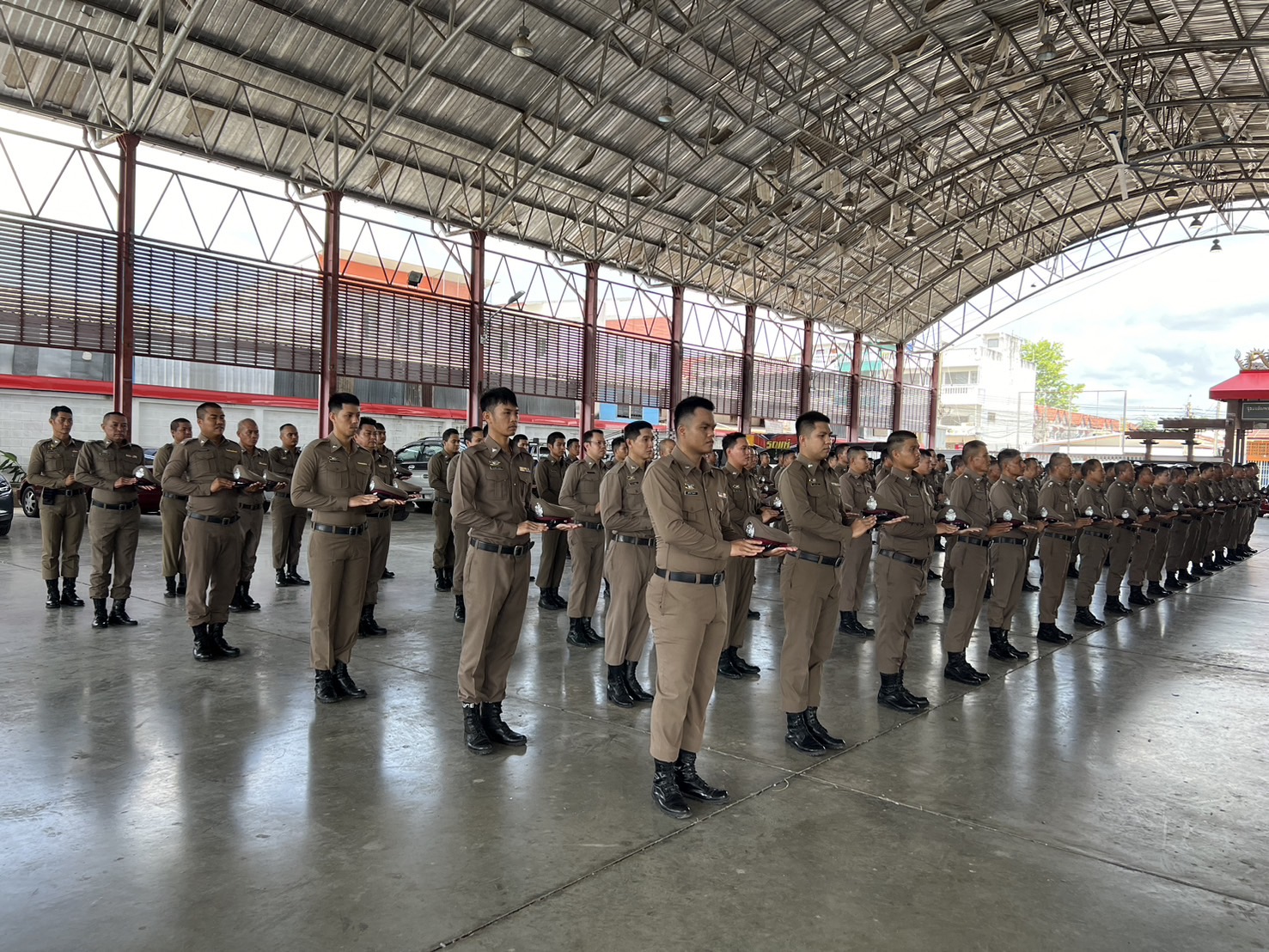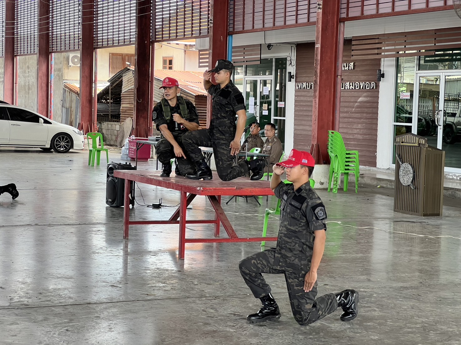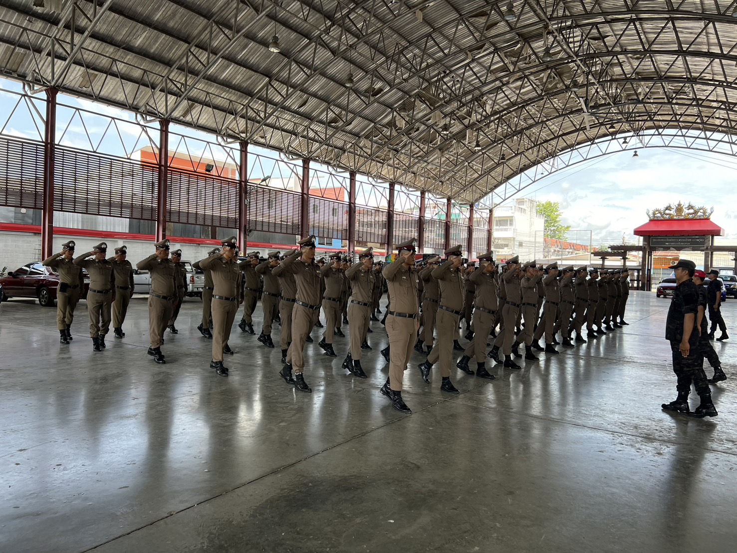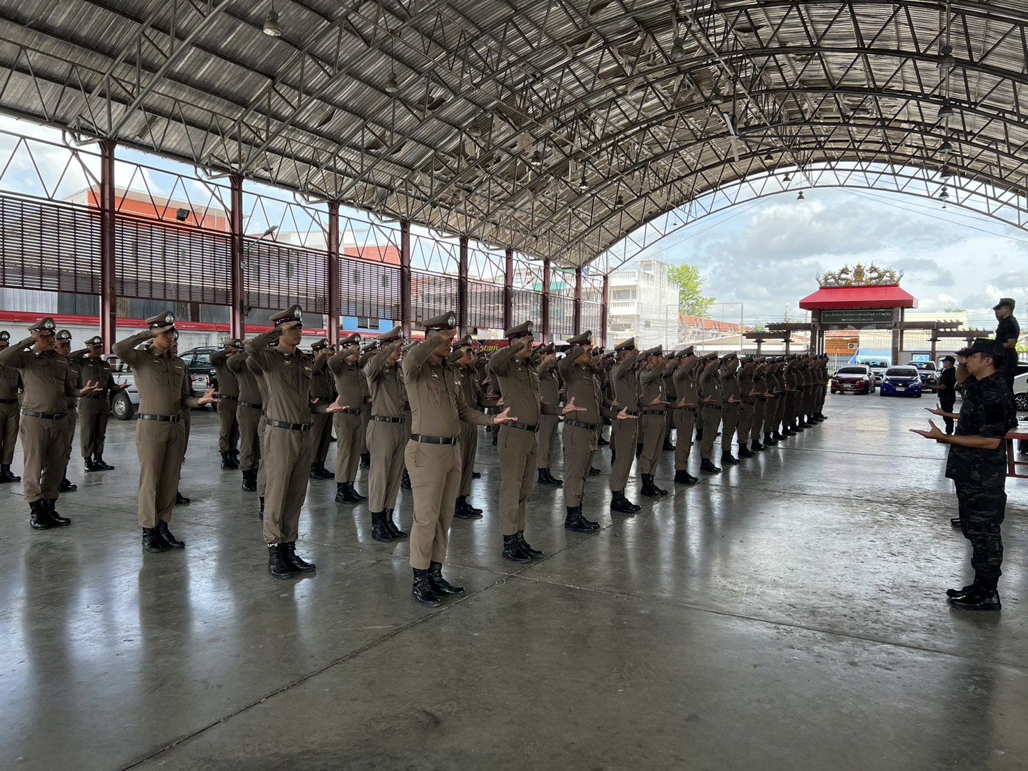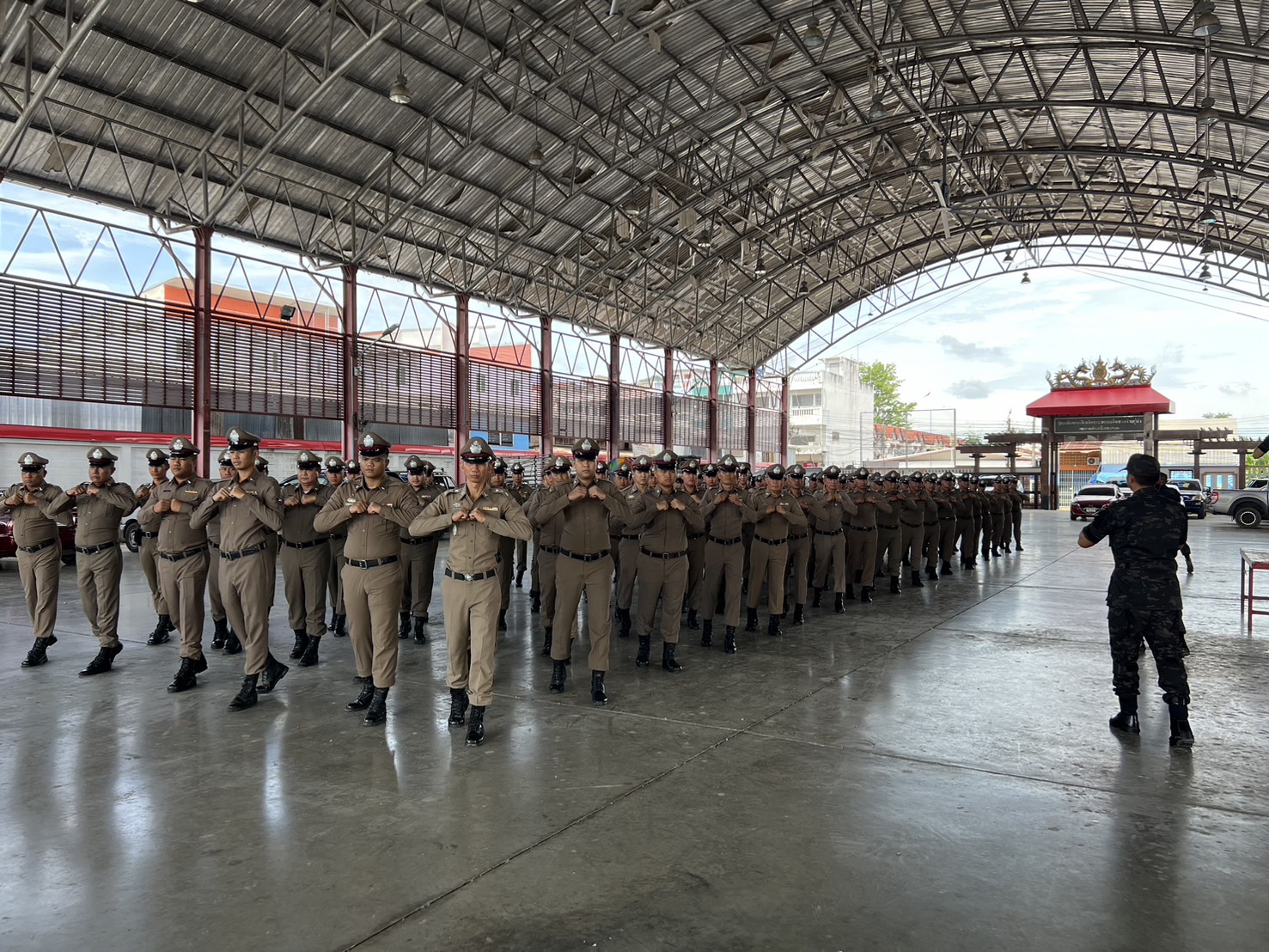 การฝึกทบทวนเสริมสร้างความพร้อมในการปฏิบัติภารกิจถวายความปลอดภัยในพื้นที่ โดยได้ดำเนินการจัดฝึกทบทวนบุคคลท่ามือเปล่าตามแบบฝึกพระราชทาน