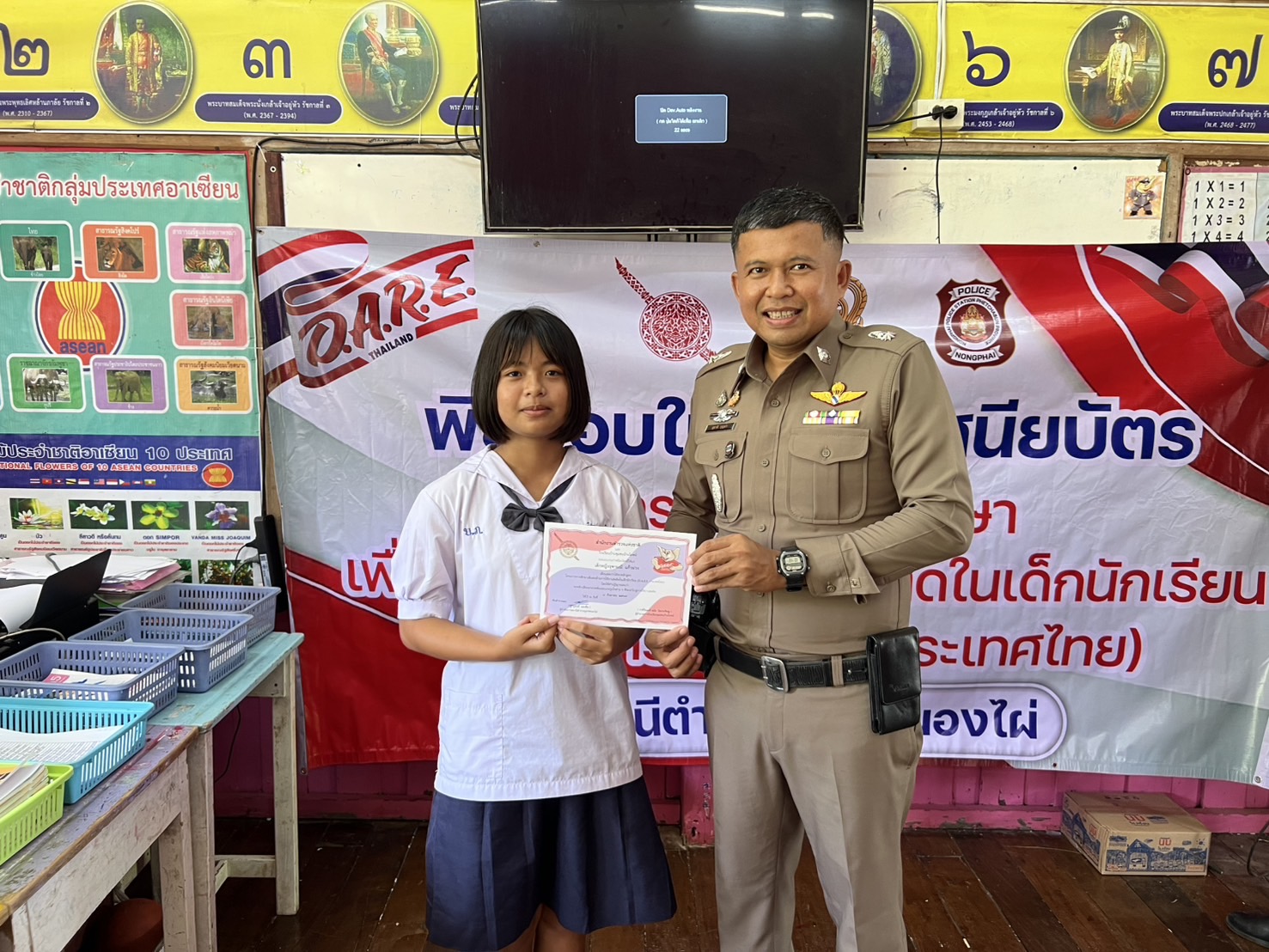 มอบใบประกาศณียบัตร โครงการ D.A.R.E. โรงเรียนอนุบาลหนองไผ่, โรงเรียนชุมชนบ้านโภชน์,โรงเรียนบ้านโคกคงสมโภชน์ และโรงเรียนบ้านคลองกระโบน