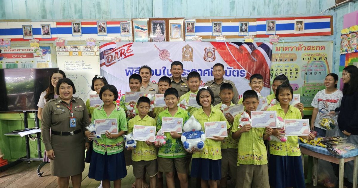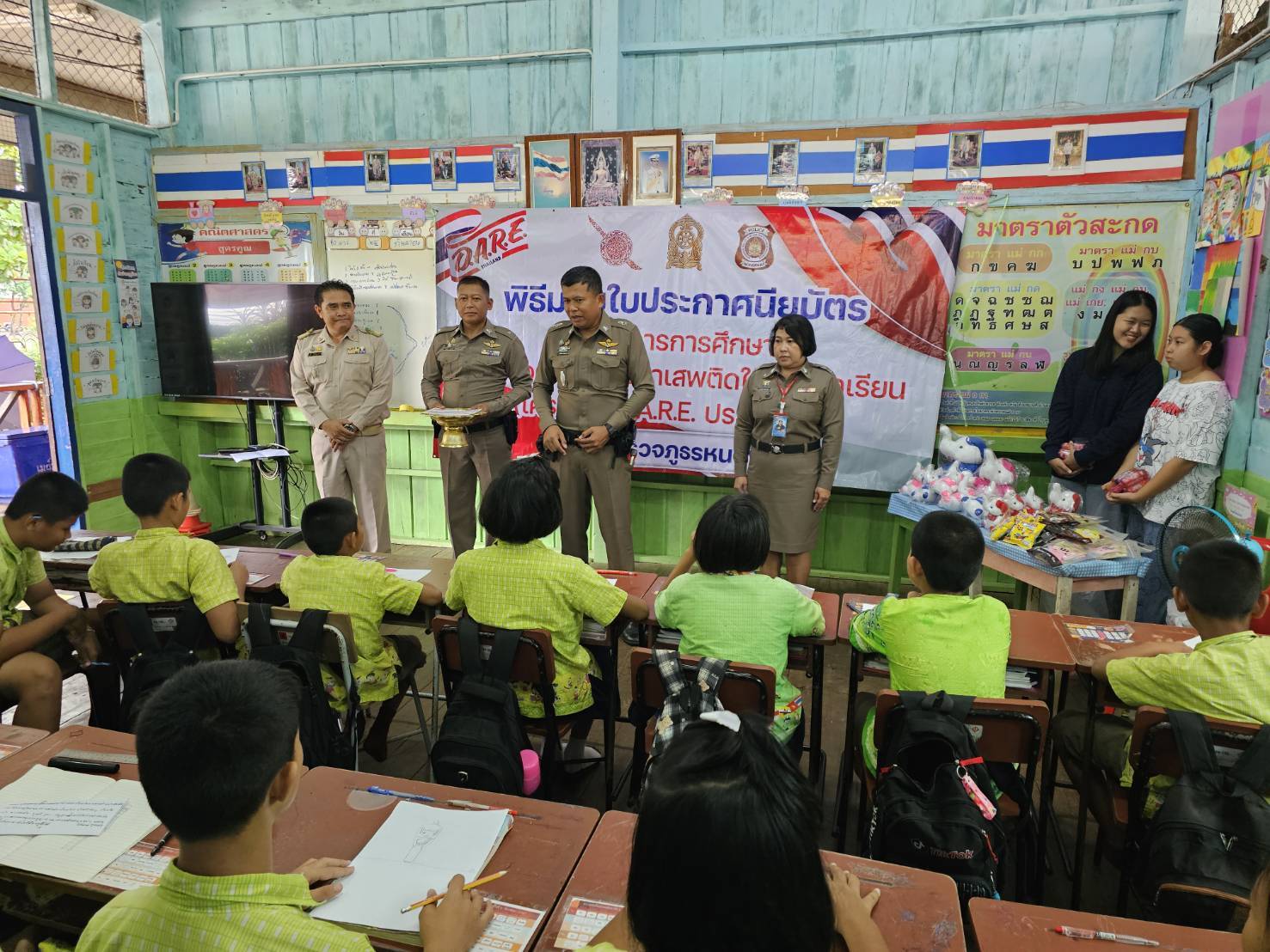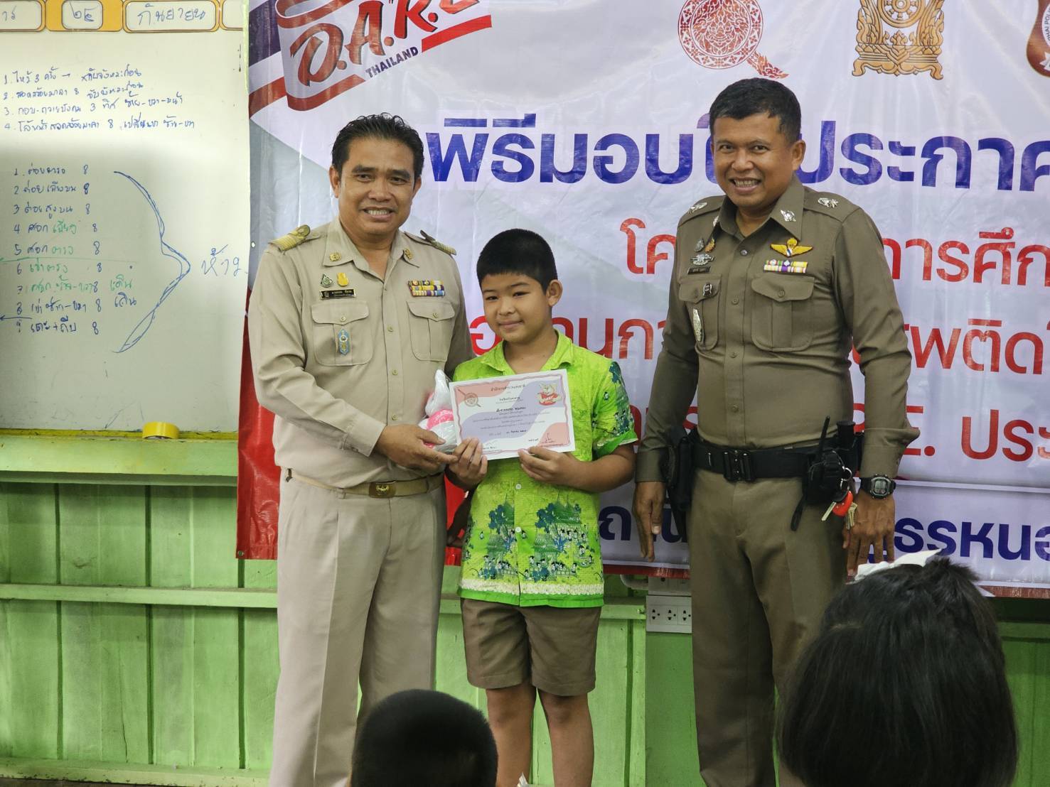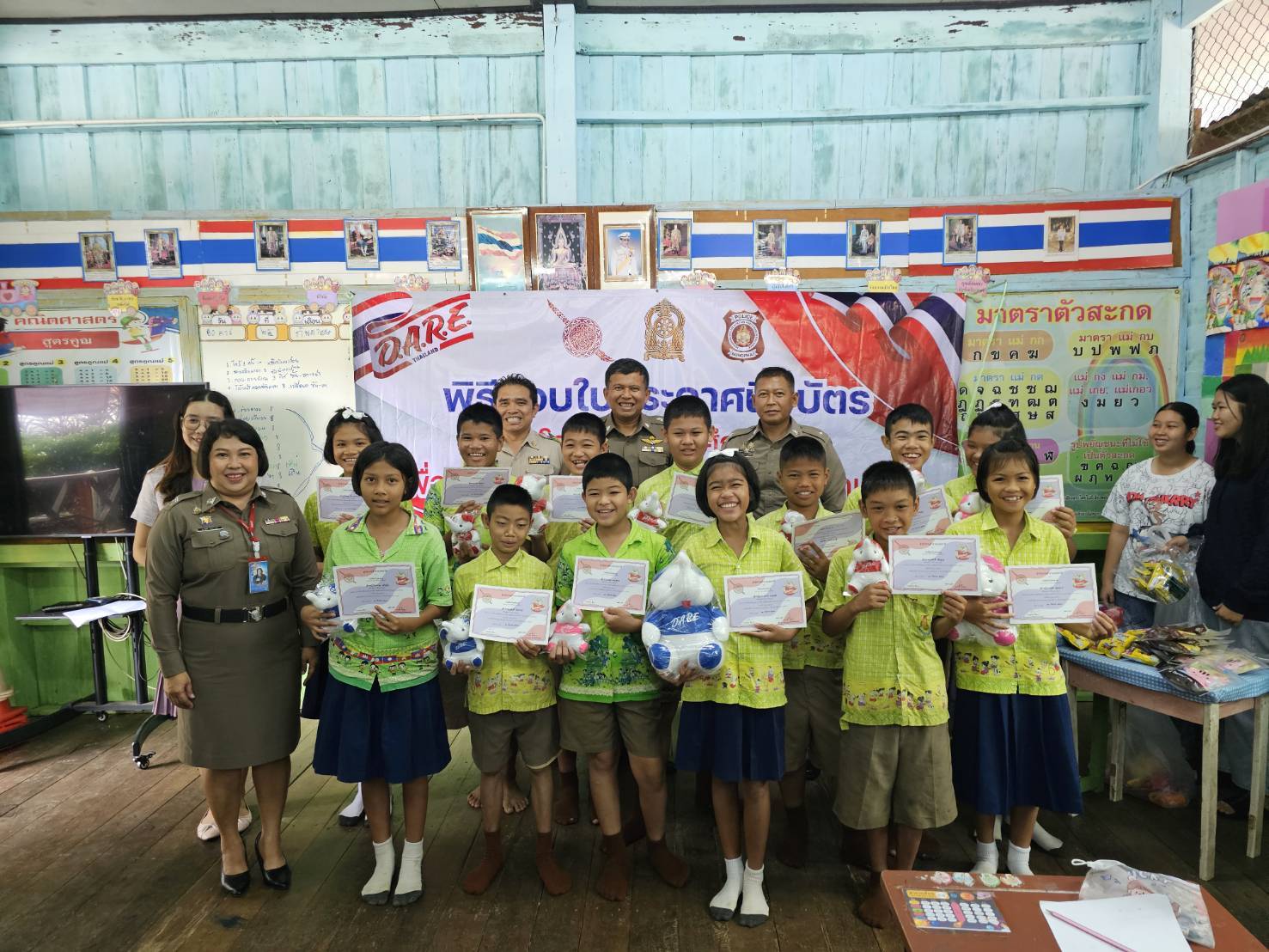 พ.ต.ต.สุชาติ บุญมา สวป.(ชส.).สภ.หนองไผ่ และ ร.ต.ต.ไพจิตร ไชยวงค์ รอง สว.(ป.)สภ.หนองไผ่ พร้อม ,จ.ส.ต.มาลินี ไชยวงค์ ,จ.ส.ต.เสกสรรค์ มาคำ ,ส.ต.อ.นราวุฒิ นกยูงทอง ผบ.หมู่(ป.)สภ.หนองไผ่ ,มอบใบประกาศ โครงการ D.A.R.E. ให้กับนักเรียนที่จบตามโครงการการศึกษาเพื่อต่อต้านการใช้ยาเสพติดในเด็กนักเรียน (D.A.R.E) โรงเรียนบ้านท่าสวาย