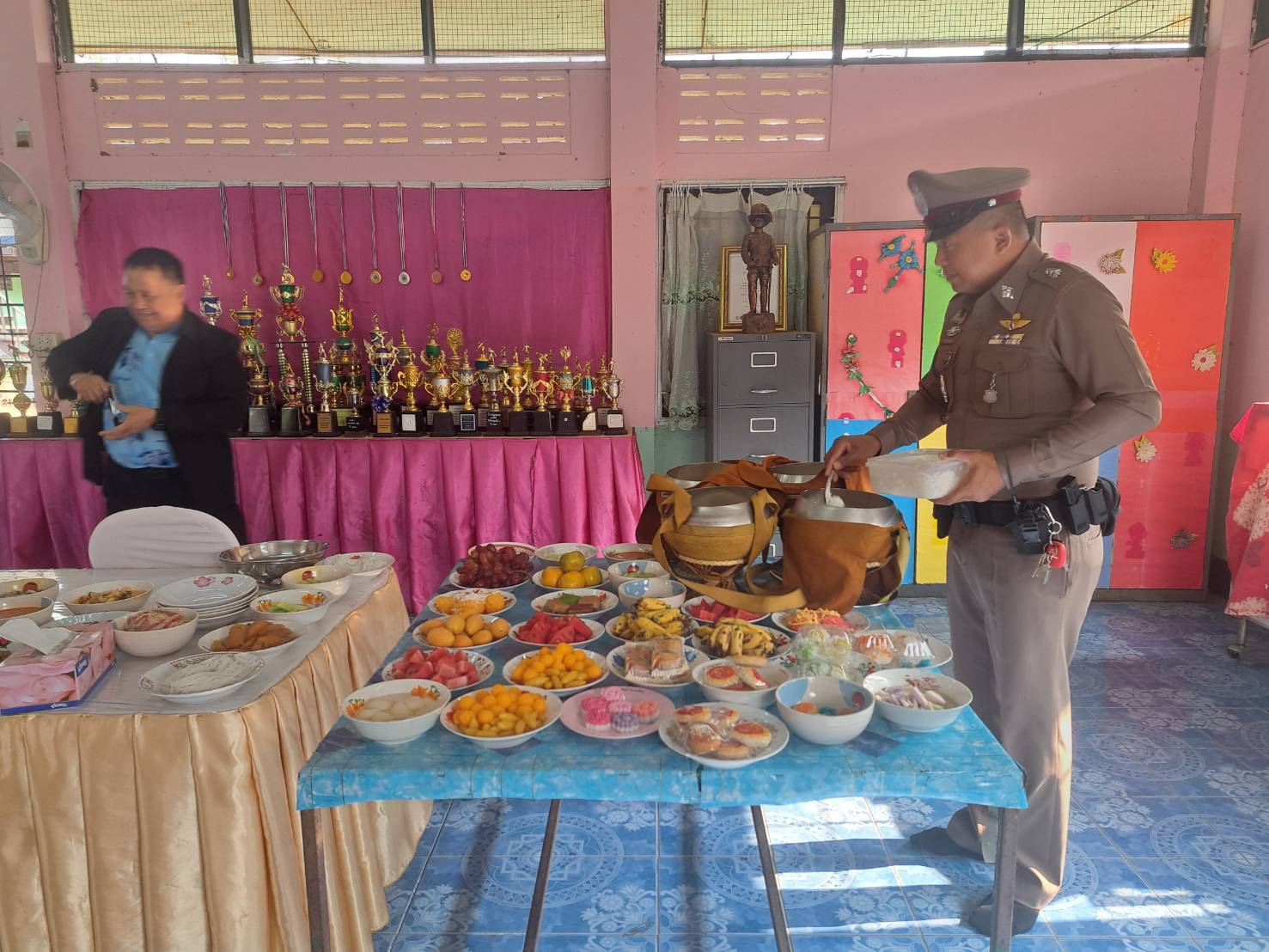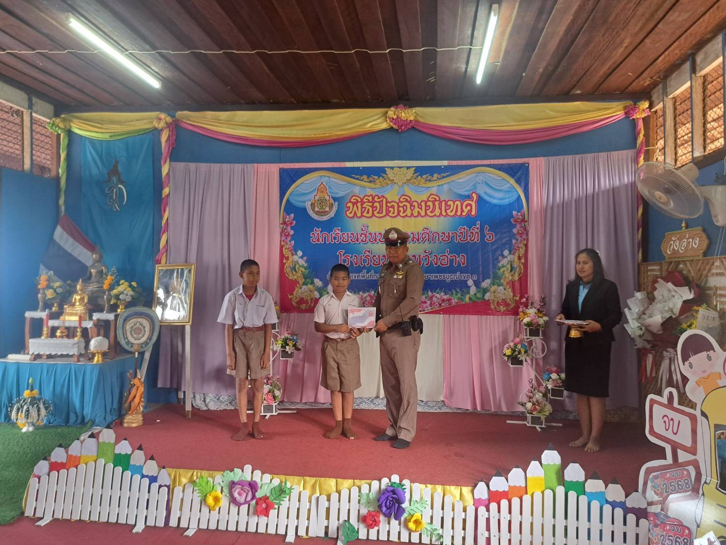 และ ร.ต.ต.ไพจิตร ไชยวงค์ รอง สว.(ป.) สภ.หนองไผ่ ชุดชุมชนสัมพันธ์ของสถานีตำรวจภูธรหนองไผ่ ร่วมพิธีปัจฉิมนิเทศนักเรียนชั้นประถมศึกษาปีที่ 6 ณ ห้องประชุมโรงเรียนบ้านวังอ่าง ต.บัววัฒนา อ.หนองไผ่ จ.เพชรบูรณ์
