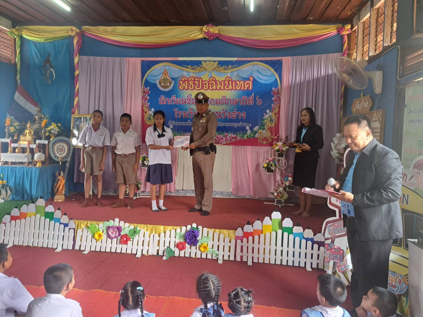 ร่วมพิธีปัจฉิมนิเทศนักเรียนชั้นประถมศึกษาปีที่ 6 ณ ห้องประชุมโรงเรียนบ้านวังอ่าง ต.บัววัฒนา อ.หนองไผ่ จ.เพชรบูรณ์