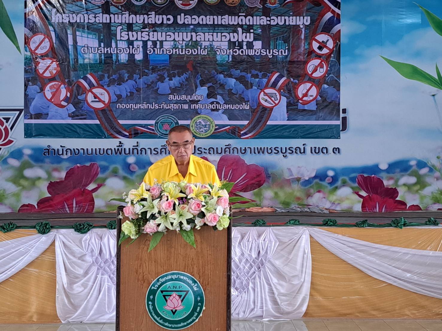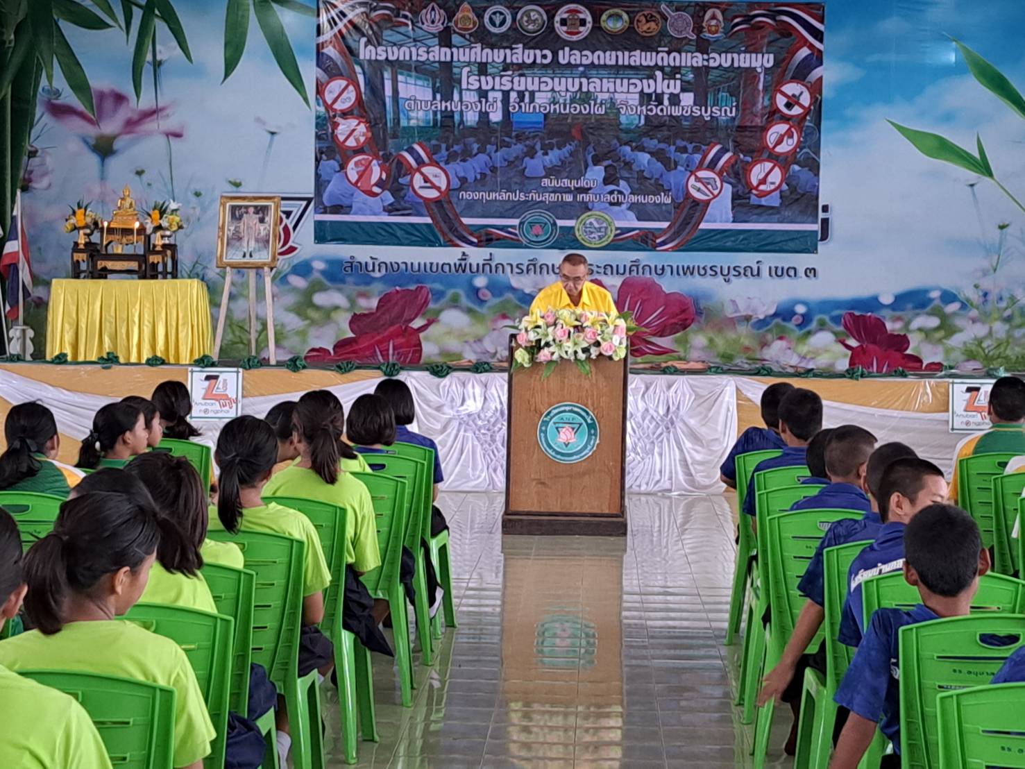 พ.ต.ต.สุชาติ บุญมา สวป.(ชส.).สภ.หนองไผ่ และ ร.ต.ต.ไพจิตร ไชยวงค์ รอง สว.(ป.)สภ.หนองไผ่ พร้อม ชุด ชมส. สภ.หนองไผ่ ,ร่วมโครงการสถานศึกษาสีขาว ปลอดยาเสพติดและอบายมุข โรงเรียนอนุบาลหนองไผ่ ร่วมลงนามใน MOU ความร่วมมือระหว่างหน่วยงาน โดยมีนายสิริชัย จันทร์พัชรินทร์ นายก ทต.หนองไผ่ เป็นประธานในพิธี ณ ห้องประชุมโรงเรียนอนุบาลหนองไผ่