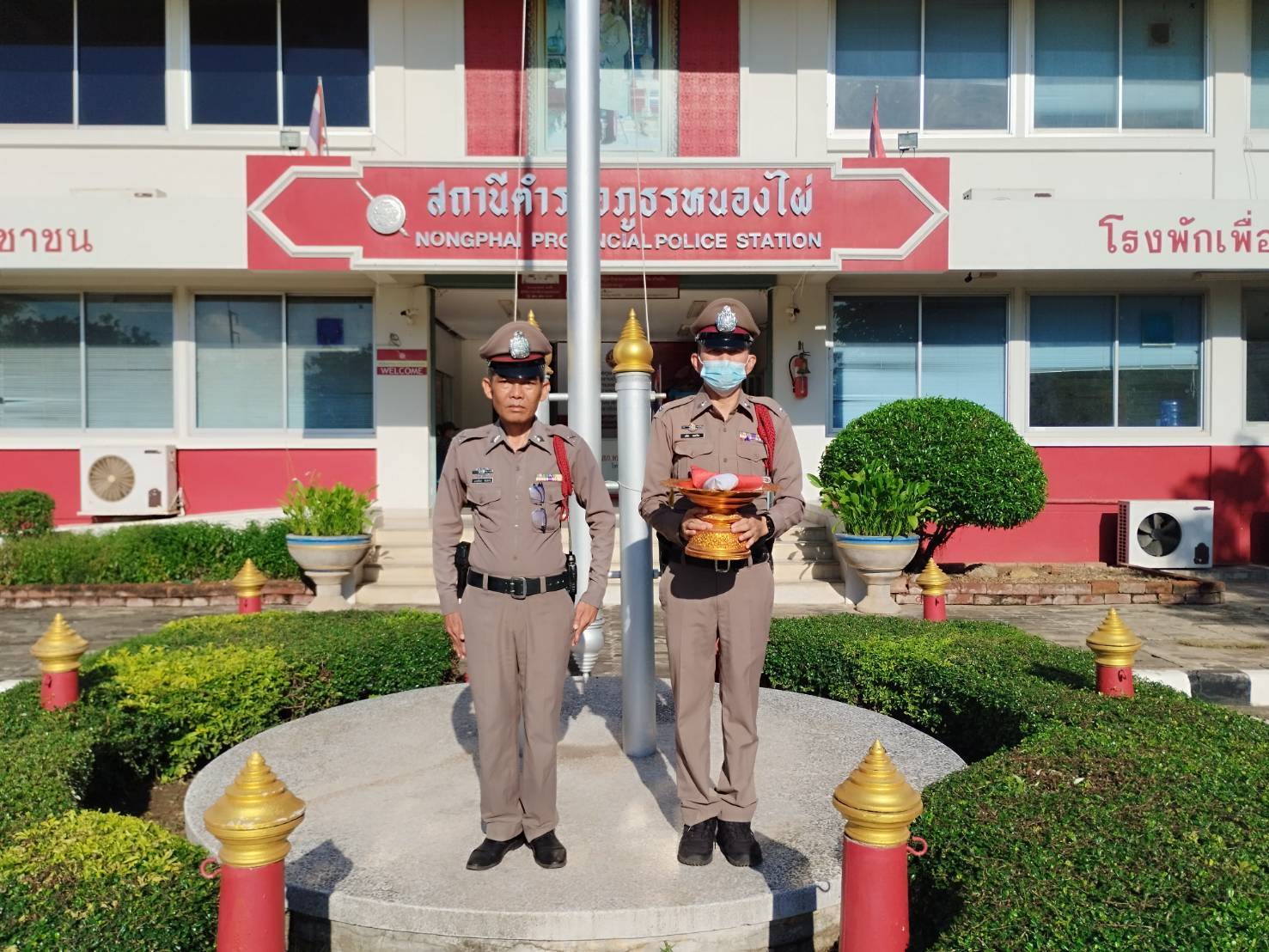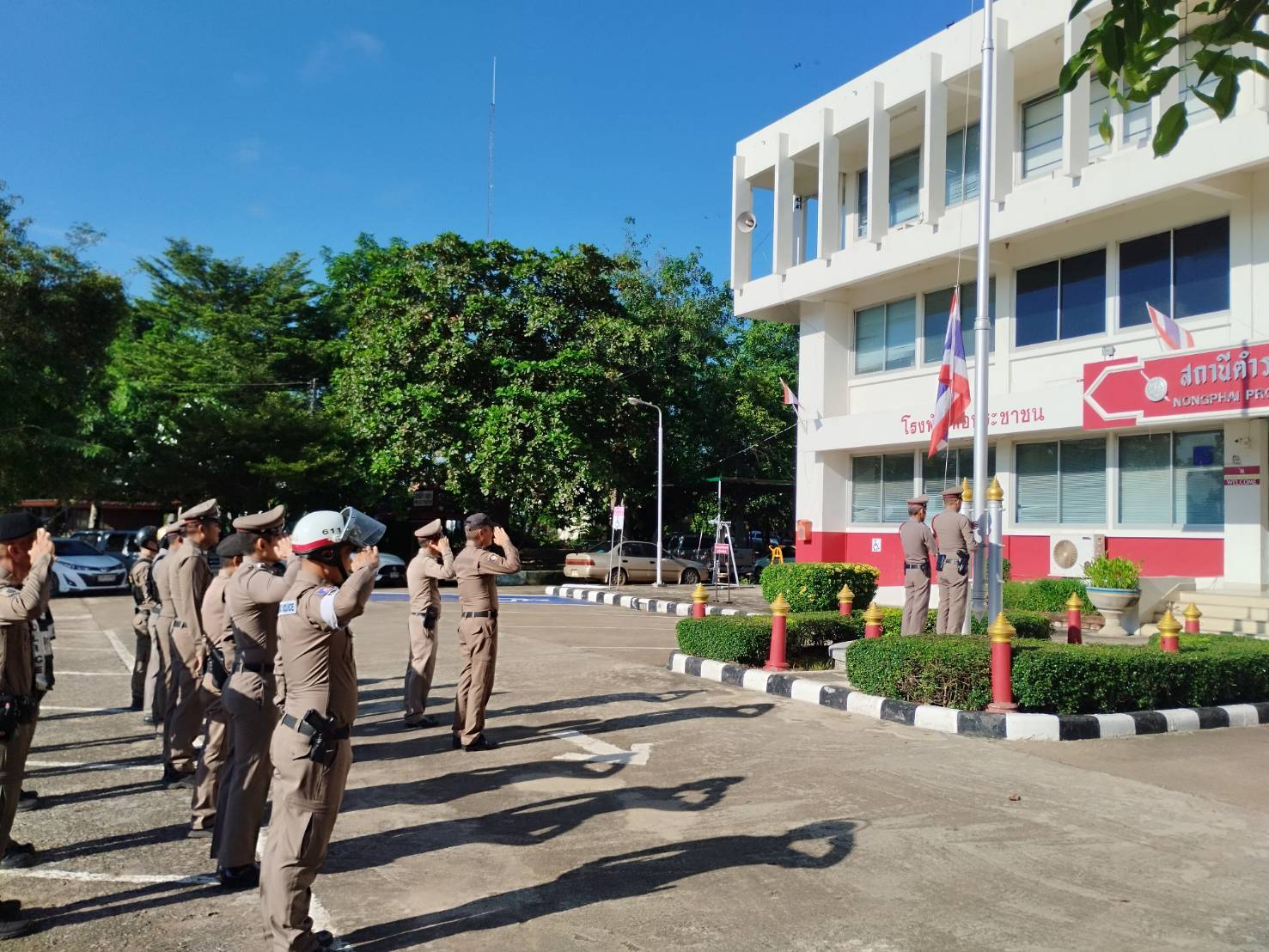 พ.ต.ท.วัตร โฉมคำ รอง ผกก.ป.สภ.หนองไผ่, พ.ต.ท.เชาว์ลิต จันทร์บ้านคลอง รอง ผกก.สส.สภ.หนองไผ่ พร้อมด้วยข้าราชการตำรวจ สภ.หนองไผ่ ร่วมเข้าแถวเคารพธงชาติ และร้องเพลงชาติไทย เนื่องในวันพระราชทานธงชาติไทย 28 กันยายน (Thai National Flag Day) ประจำปี 2567 ณ บริเวณหน้าเสาธง สภ.หนองไผ่