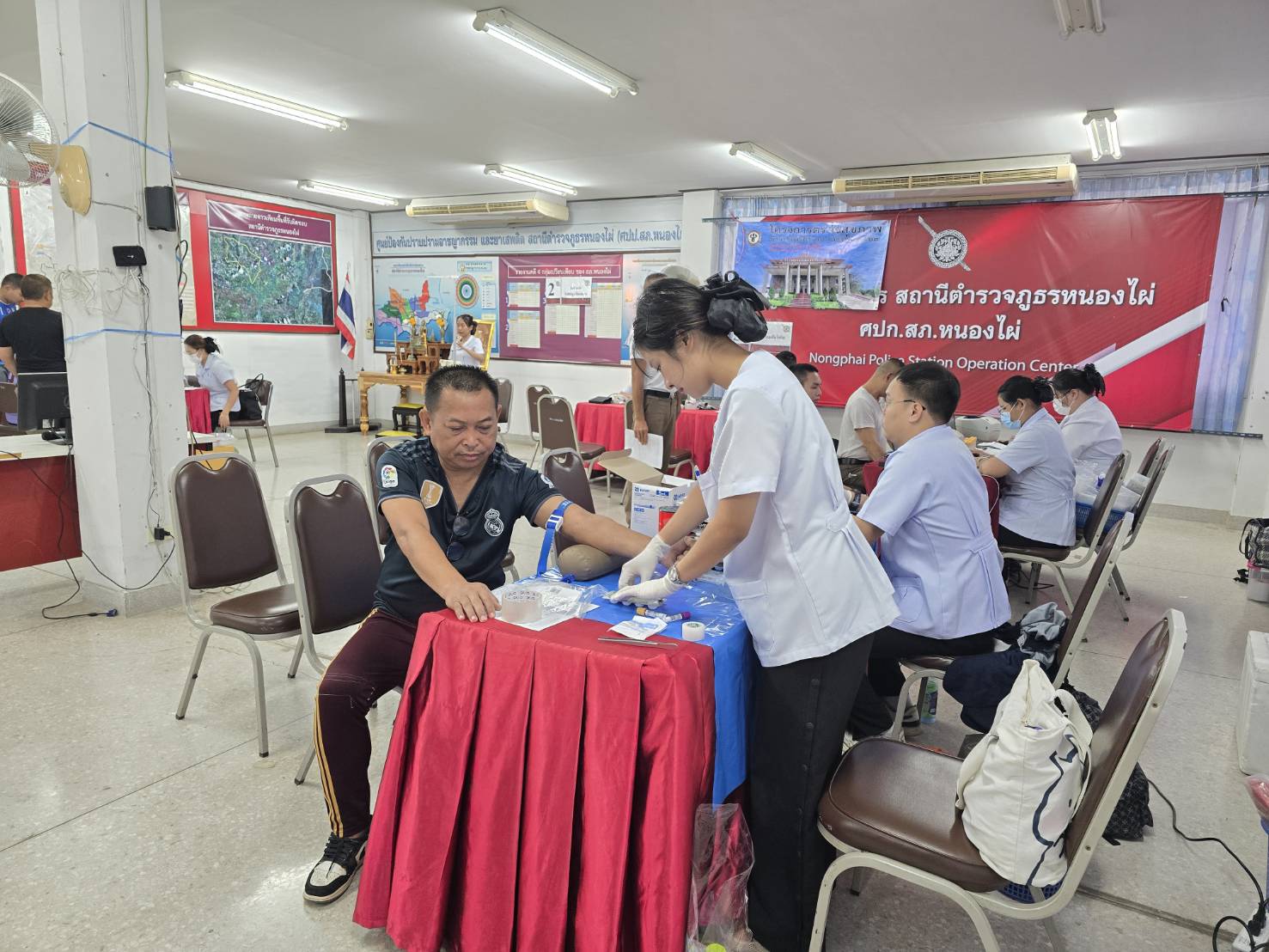 พ.ต.อ.ฐานุพงศ์ แสงซื่อ ผกก.สภ.หนองไผ่ พร้อมด้วยข้าราชการตำรวจ สภ.หนองไผ่ ร่วมตรวจสุขภาพประจำปี 2569 จาก เจ้าหน้าที่โรงพยาบาลดารารัศมี ณ สภ.หนองไผ่ ทั้งนี้ ทางโรงพยาบาลดารารัศมี ได้มอบกล่องยาปฐมพยาบาล ให้กับ สภ.หนองไผ่ เพื่อให้ข้าราชการตำรวจ สภ.หนองไผ่ ใช้ในการบรรเทาอาการเจ็บป่วยเบื้องต้น
