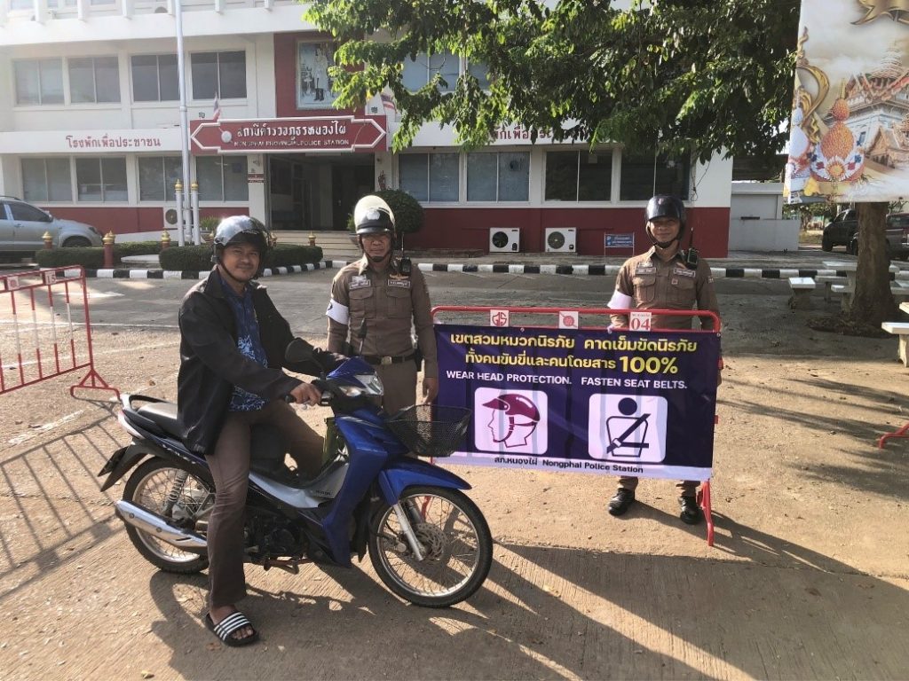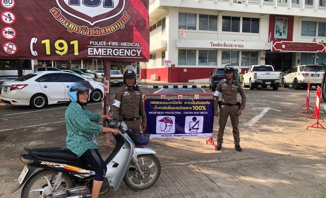 สายตรวจจราจร สภ.หนองไผ่ ติดป้ายประชาสัมพันธ์ ขับขี่ปลอดภัย