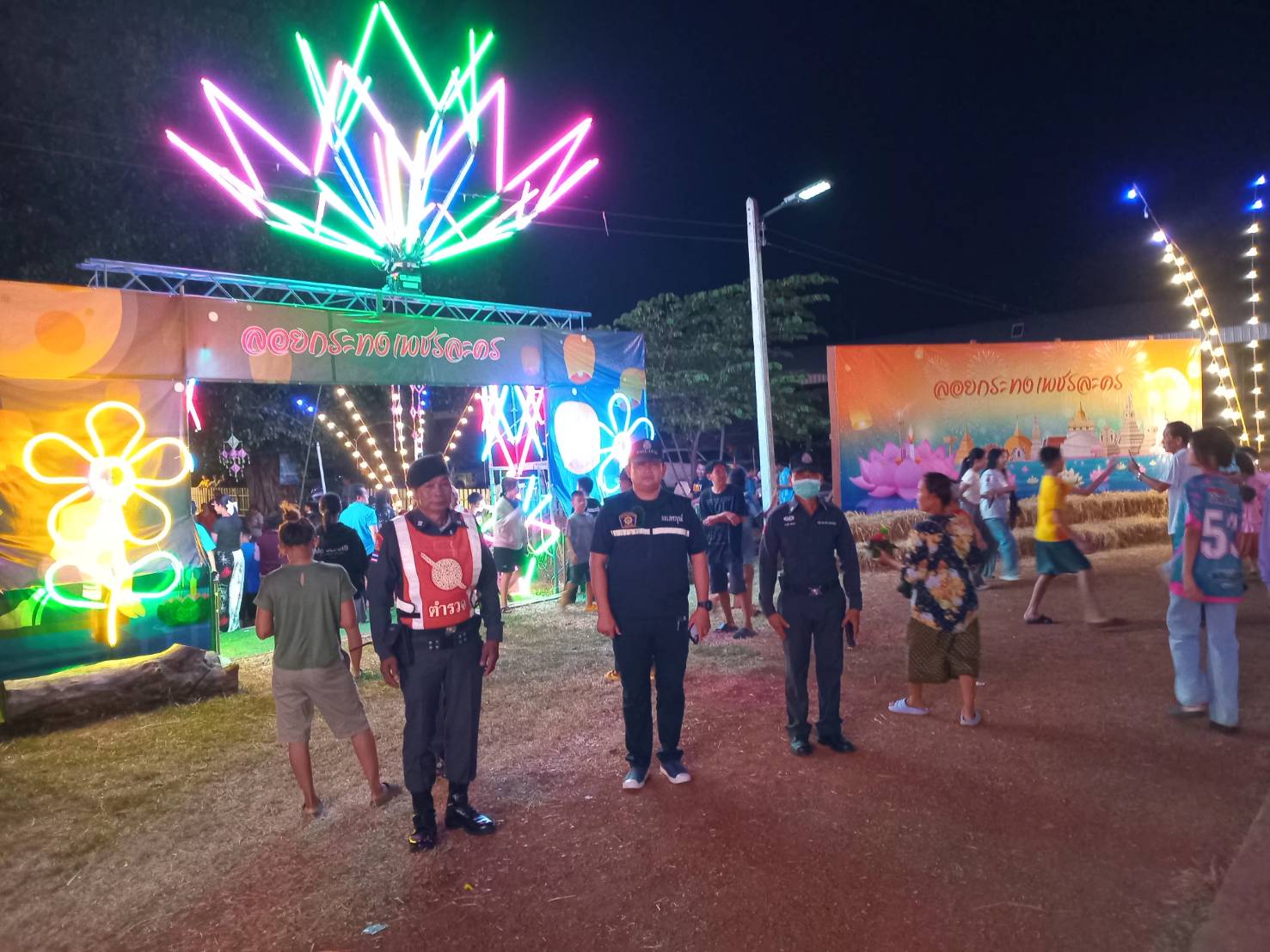 สายตรวจตำบลเพชรละคร รักษาความสงบเรียบร้อยความปลอดภัยเทศกาลลอยกระทง ประจำปี 2567 ณ สนามโรงเรียนบ้านเพชรละคร