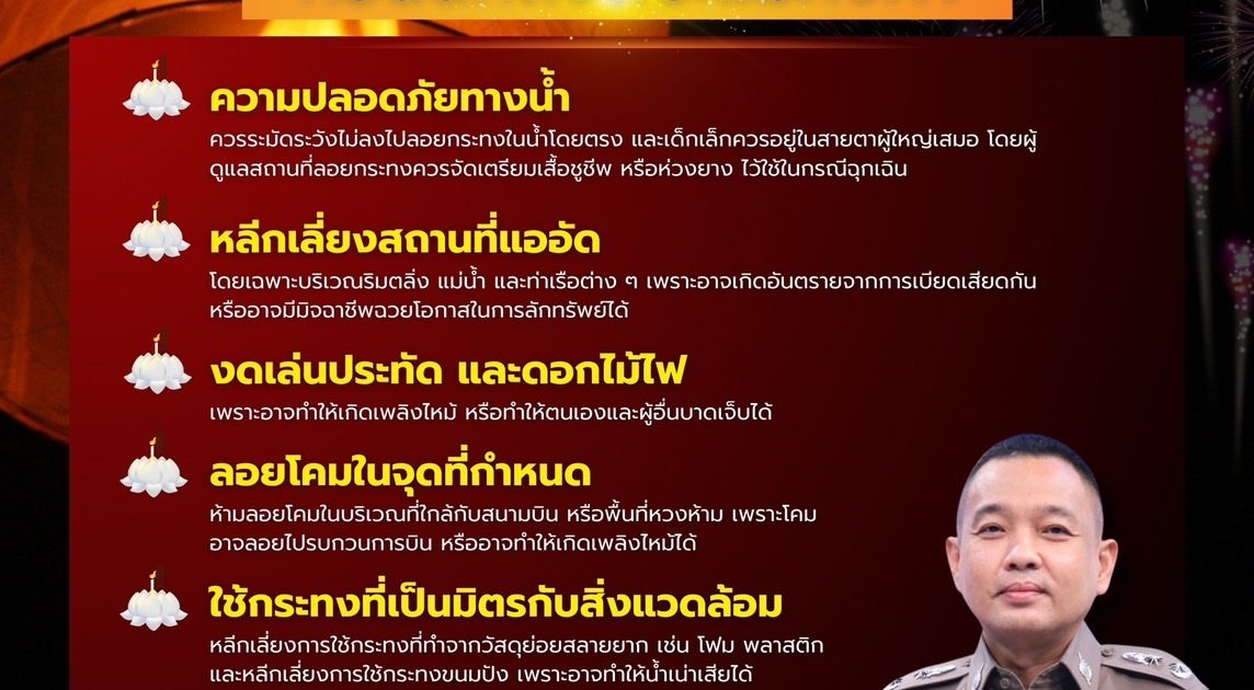 สำนักงานตำรวจแห่งชาติเตือนลอยกระทงปลอดภัย ต้องใส่ใจส่วนรวม แนะ 6 สิ่งต้องคำนึง ก่อนนึกถึงพระแม่คงคา