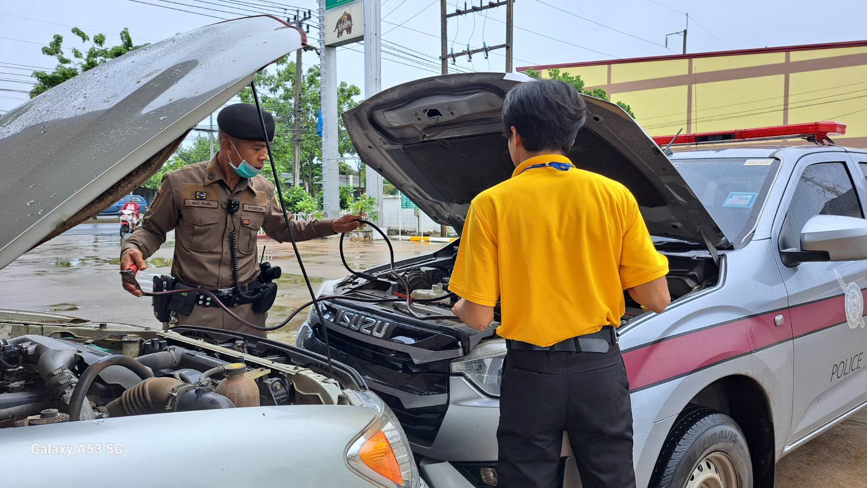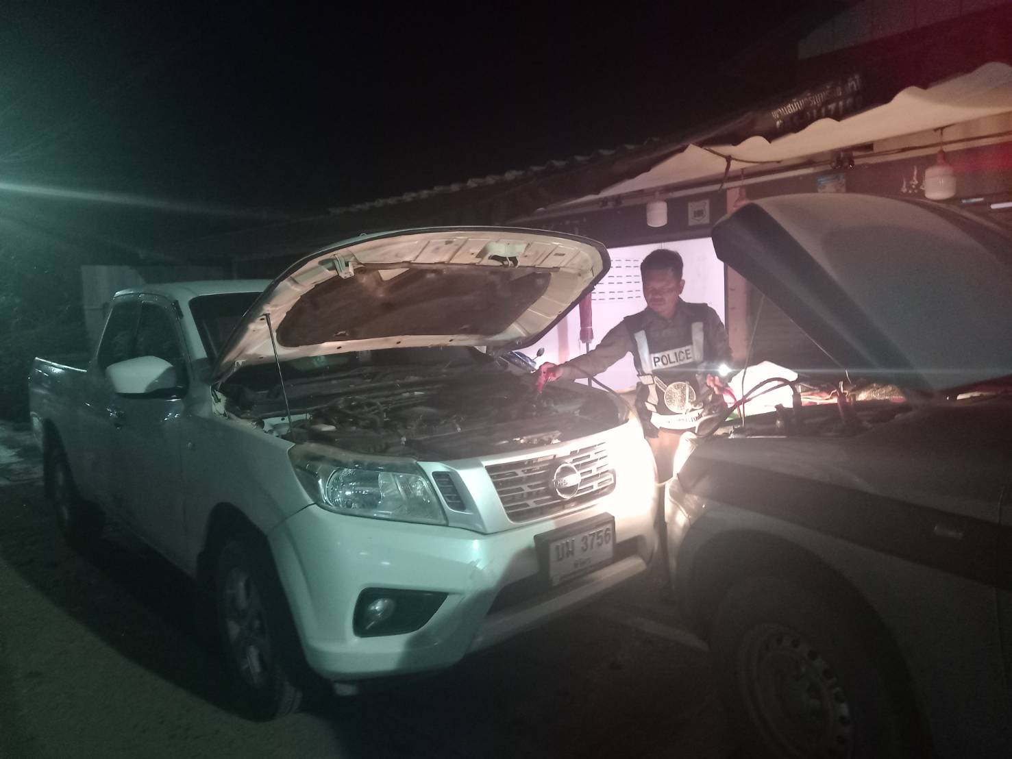 ช่วยเหลือประชาชนรถสตาทไม่ติด ต่อพ่วงไฟแบตเตอร์รี่